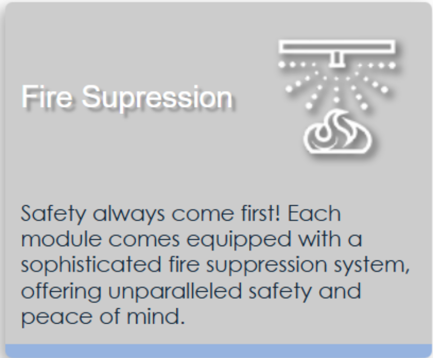 cold conditions. - Safety always come first! Each module comes equipped with a sophisticated fire suppression system, offering unparalleled safety and peace of mind.