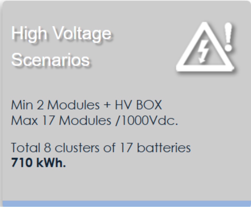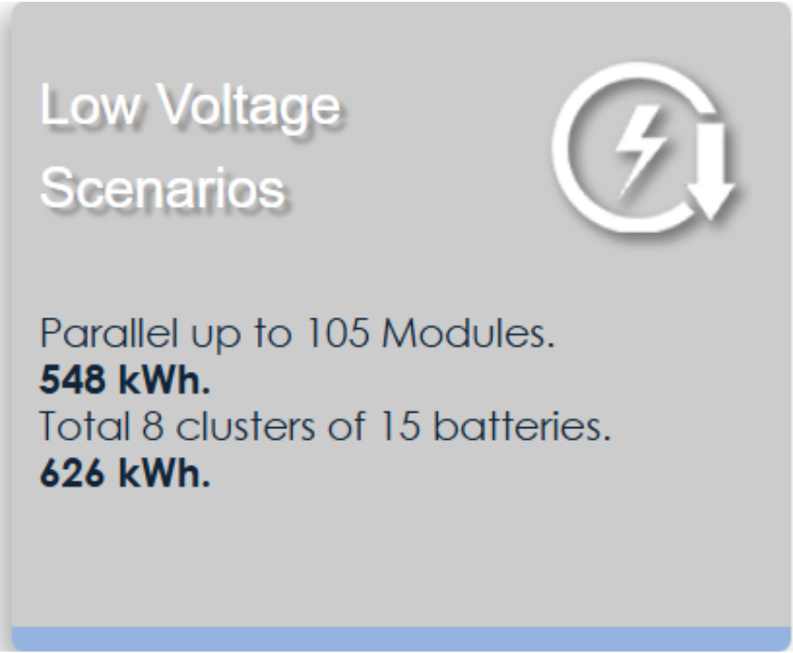 LV Mode: Max 15 Modules in Parallel / 105 with HUB LV HV Mode: 17 in series / 170 with HUB HV |